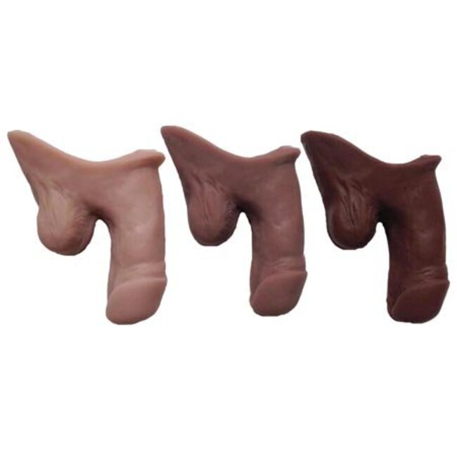 Cast in 100% premium soft platinum-cured silicone, the Model D Sport STP is a single piece-- no tubing or glued areas that could fail over time. The shaft is hollow and forms a funnel at the top, so the user can urinate through the packer comfortably. The testicles are solid and placed naturally below the shaft-- the top of the testicles forms the back lip of the funnel, for ease of positioning.