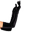 Black velvet opera length gloves. One Size/Regular: 90-160 lbs. 96% polyester, 4% spandex. Leg Avenue 2052