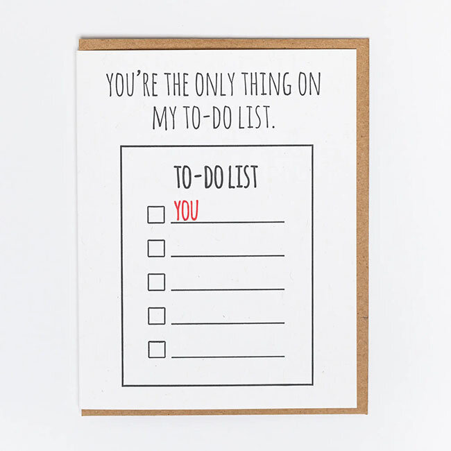Front reads "You're the only thing on my to-do list;" below that text shows a check list with "To-do" and "You" as the only item. Blank on the inside.